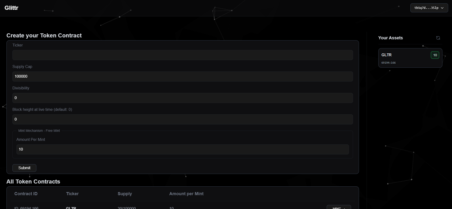 `git clone`[`https://github.com/Glittrfi/glittr-examples/tree/main`](https://github.com/Glittrfi/glittr-examples/tree/main)